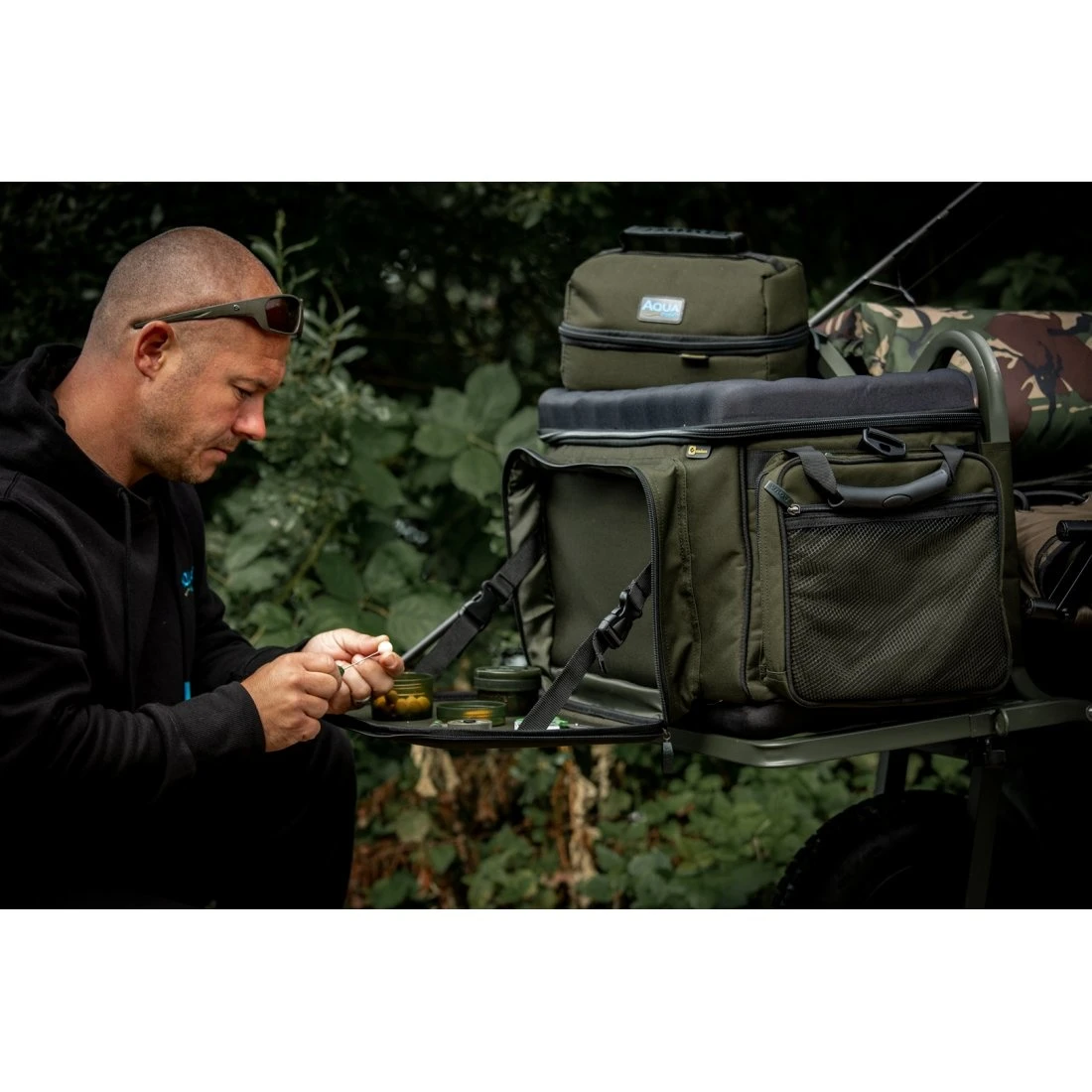 Biedt gemakkelijke toegang tot essentiële items wanneer een mobiele benadering vereist is bij het vissen vanaf een kruiwagen.