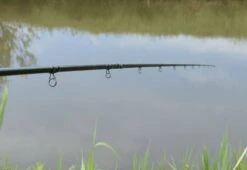 Deze hengels zijn uitgevoerd met 12 ogen & topoog, de wikkelingen zijn donkergroen waarbij de wikkelingen rond de sluiting en de wikkelingen boven de kurken greep zijn uitgevoerd met lichtgroene accenten.