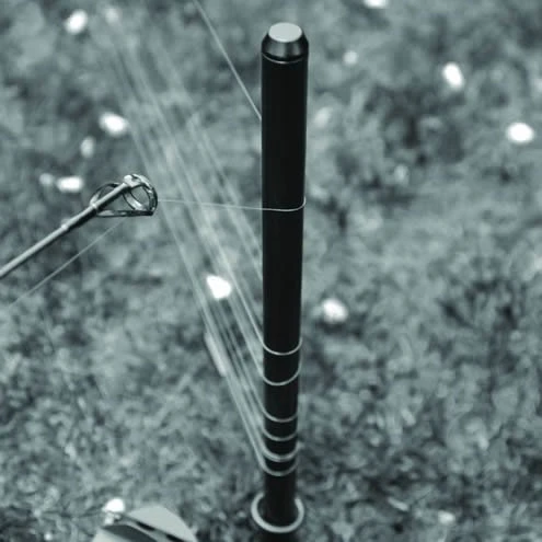 Nooit meer opnieuw markeren of rond werpen, plaats gewoon je distance sticks in de grond, wikkel de benodigde hoeveelheid hoofdlijn eromheen, clip-up en werp uit.