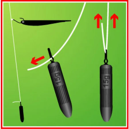Door de karabijnspeld kunnen diverse lijndiktes gebruikt worden en er kan snel van loodgewicht gewisseld worden.
