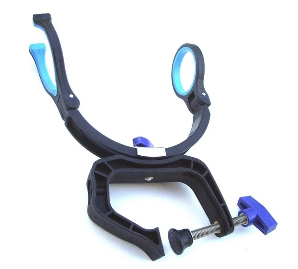 De steun is scharnierend zodat je de hengel omhoog, horizontaal of naar het water kunt richten.