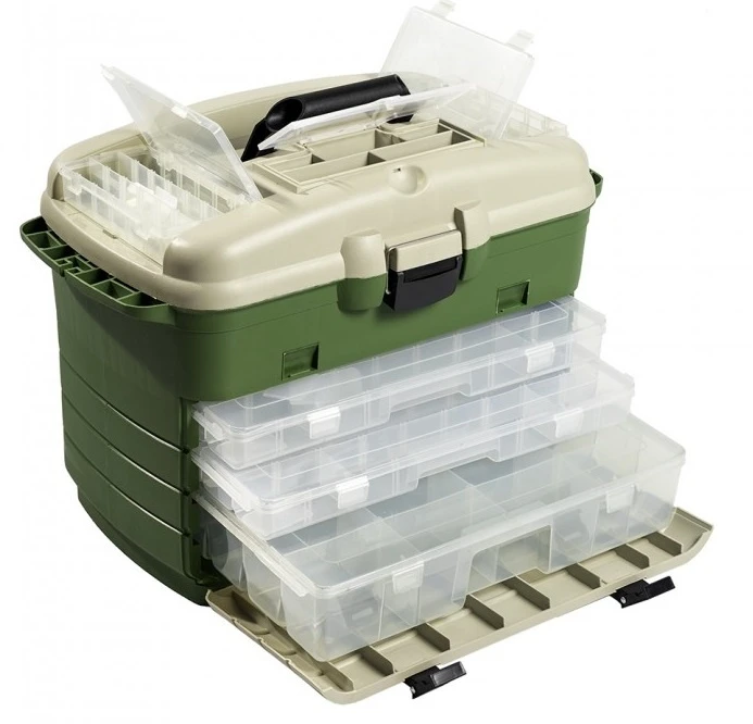 Geleverd inclusief 3 grote en 2 kleine tackleboxen
