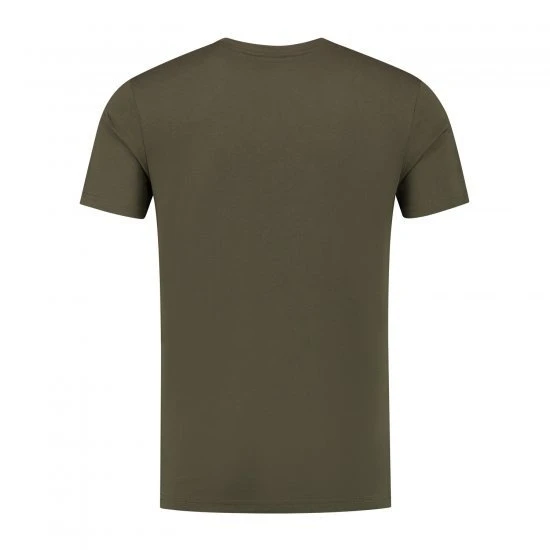 De submerged tee is overwegend olijfgroen van kleur met een ‘peach skin’ afwerking die het een zachte, fluweelachtige textuur geeft en uiterst comfortabel aanvoelt tegen je huid.