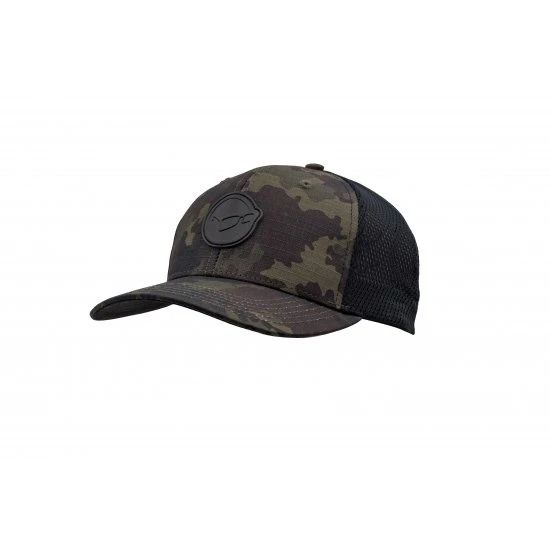 De voorkant van de pet is voorzien van een korda logo en onze kenmerkende donkere camo, met een traditionele gebogen piek die perfect is om zon en schittering uit je ogen te houden tijdens het spotten van vis.