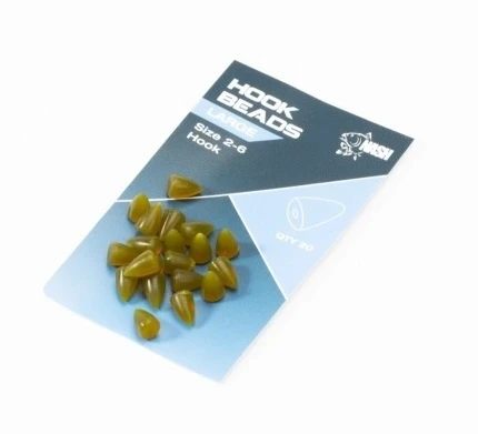 De hook beads van nash zijn kleine stoppertjes om een hook ring swivel of hook swivel op zijn plaatst te houden op de haaksteel.