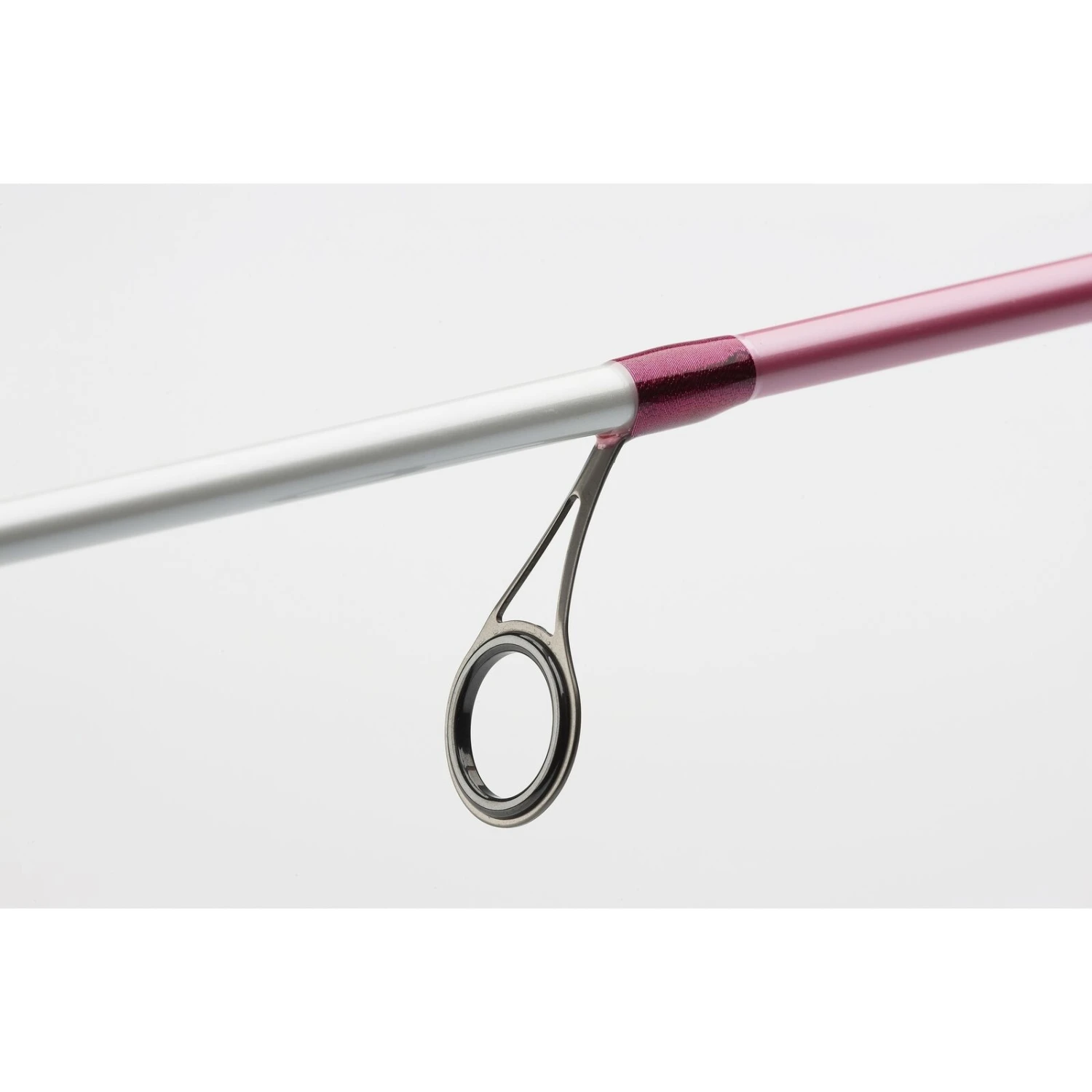 De naam zegt het al: De hengel is gedeeltelijk roze, dit maakt de okuma pink pearl v2 een echte eyecatcher.